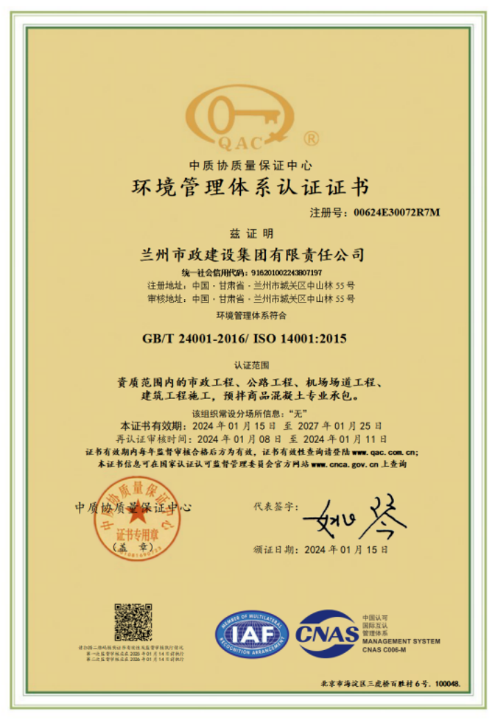 1月23日,甘肅文旅集團旗下子公司蘭州市政建設集團順利通過ISO9001質量管理體系、ISO14001環(huán)境管理體系、ISO45001職業(yè)健康安全管理體系再認證審核,蘭州市政建設集團已連續(xù)27年通過ISO綜合管理體系認證。