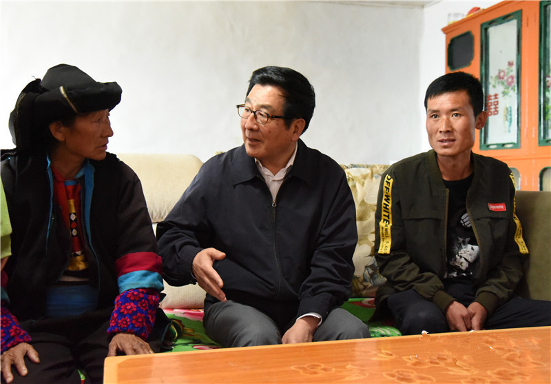 舟曲縣果耶鄉前山村是深度貧困村,這里山大溝深、地形陡峭、交通閉塞。沿著蜿蜒山路,中午時分,林鐸來到村民尹魯魯代、尹九馬周、尹今常家,察看住房保障、安全飲水等情況,同他們促膝交談,詳細詢問收入來源、務工就業、子女上學、醫療報銷等情況。林鐸還看望慰問了駐村干部。