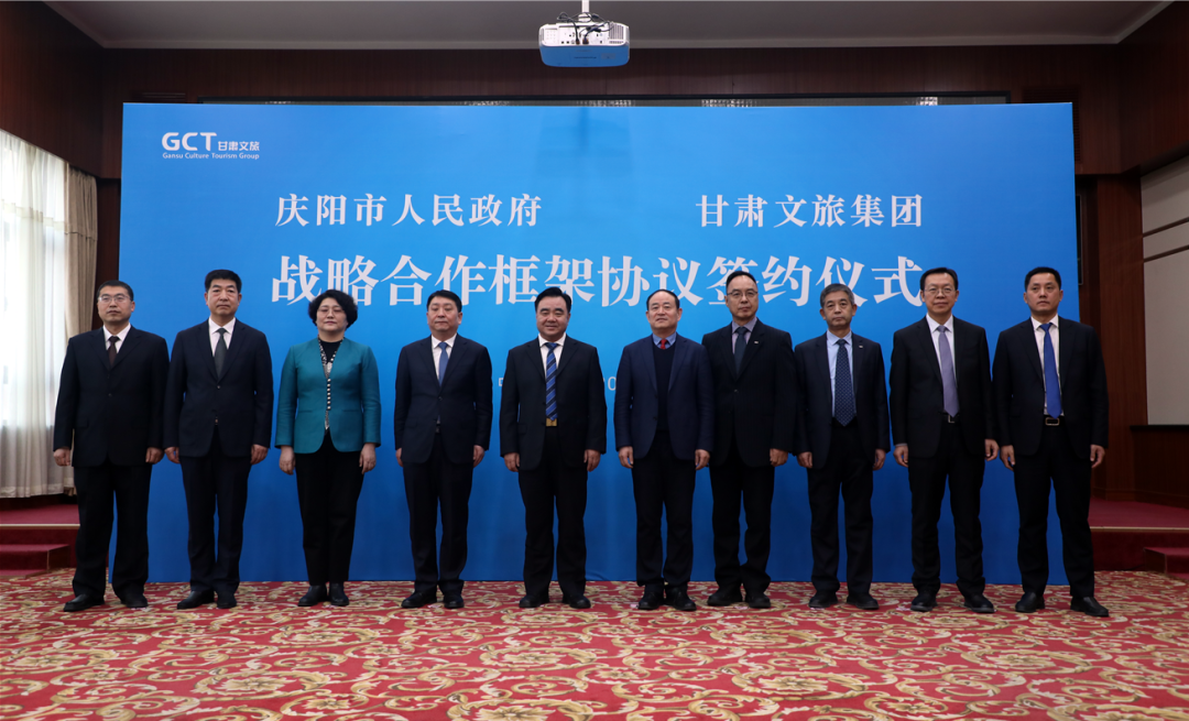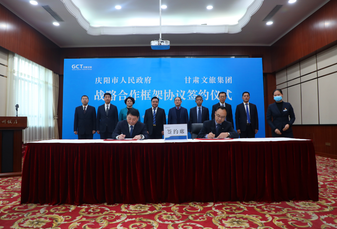 慶陽市委副書記、市長周繼軍,市委常委、宣傳部長宋樹紅,市委常委、市委秘書長石福勝,副市長吳寶定,甘肅文旅集團黨委副書記、總經理楊宇宏,黨委副書記、工會主席王寧,黨委委員、副總經理朱銀鴻、杭荷兵出席簽約儀式。楊宇宏、周繼軍代表雙方簽訂協議,王寧主持簽約儀式。