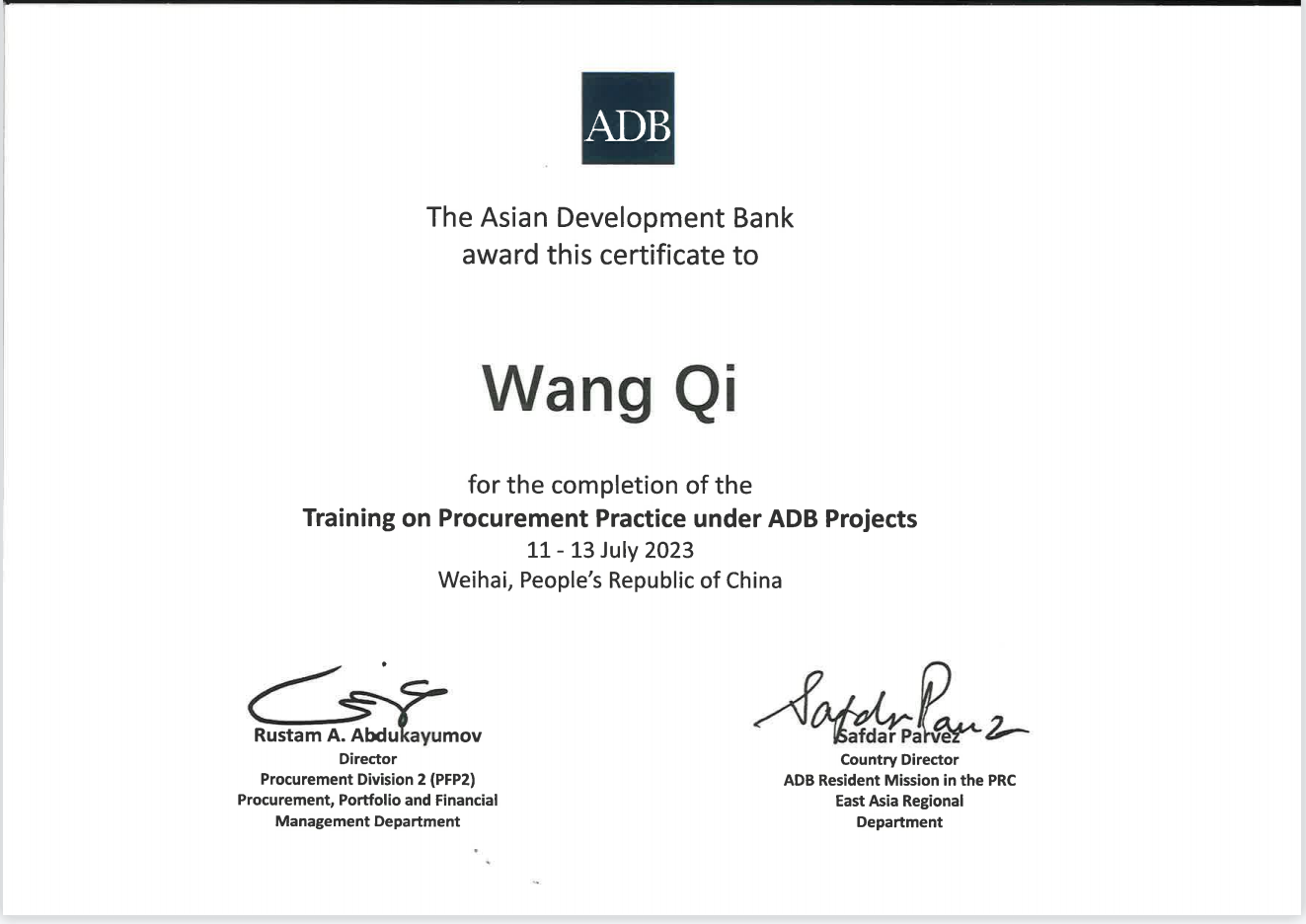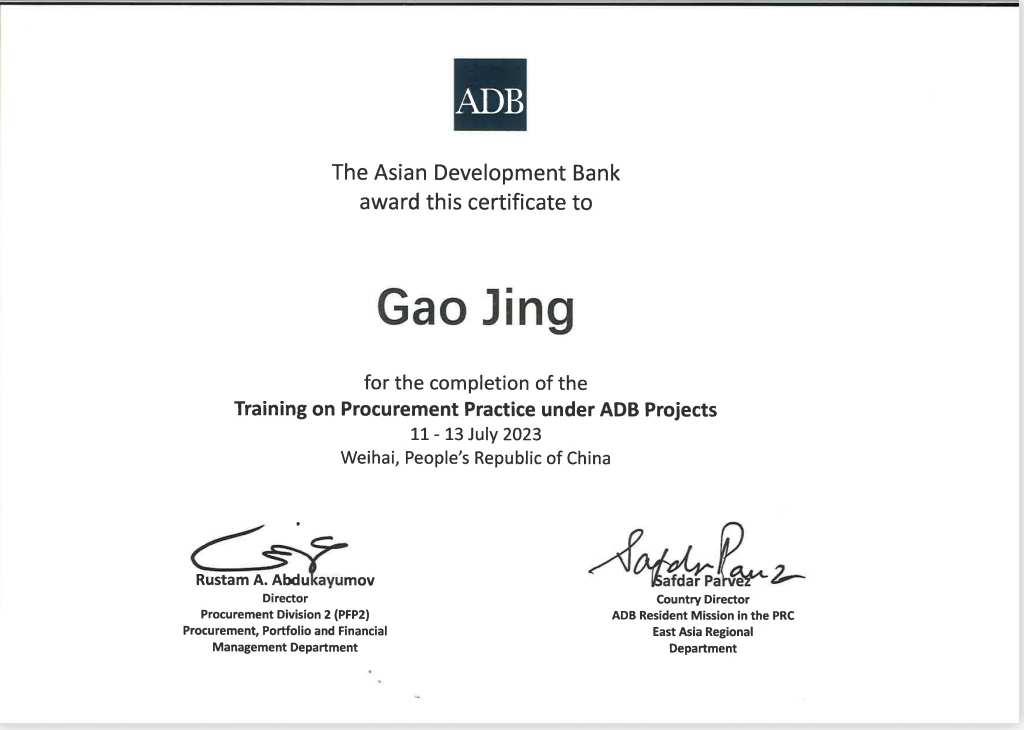 2023年8月,由亞洲開發銀行(以下簡稱“亞行”)主辦,亞行駐中國代表處承辦的采購實踐培訓、項目財務管理培訓在山東順利舉辦。甘肅文旅集團國際金融組織貸款項目管理辦公室三名同志作為亞行貸款甘肅環境可持續鄉村振興與發展項目代表參加了此次培訓。